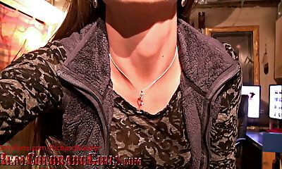 Amateur quite nimble and big racked nympho uses a sex toy for her cooter