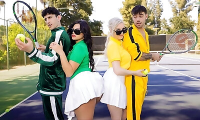 Tennis Game With Breezy Stepmoms Leads To 4 Way Fuckfest Orgy - Kenzie Taylor & Mona Azar - MomSwap