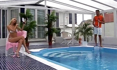 Incredible blond milf seduced her pool cleaner and gets fucked well by the pool