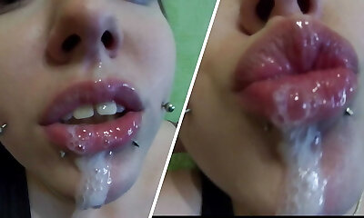 Three gigantic cumshots in my mouth and face, I enjoy milk