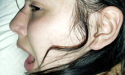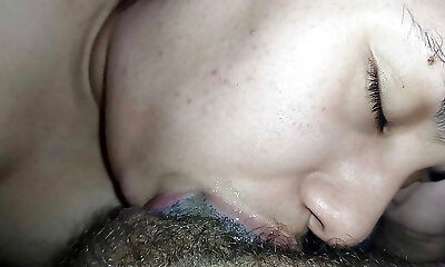 bubbling saliva on the pervert's hard knob fucking my throat very horny