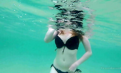 Pool side nude boob and gash play
