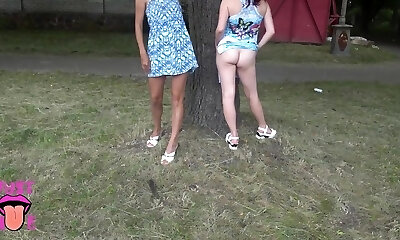 Two Girls Flashing Snatch In Public Park, Upskirt No Panties