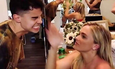 FAKEhub - College Webcam Girl gets a Surprise when housemate sneaks in and pokes her in the ass