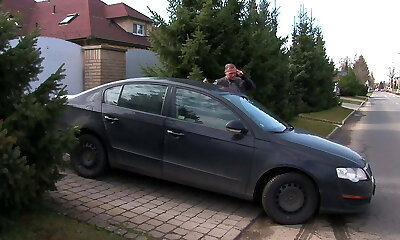 Hot blond with amazing body gets romped over bonnet of car
