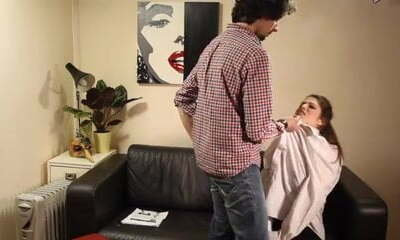 Hot Step Mother Tempts Step Son in the office, shows him white nipples and Makes big cock Handjob