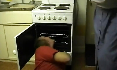 Stepmom is surprised by her stepson and catapults her ginormous cock in the kitchen