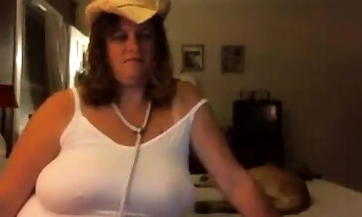 My whorish BBW wife is playing with her fat natural jugs