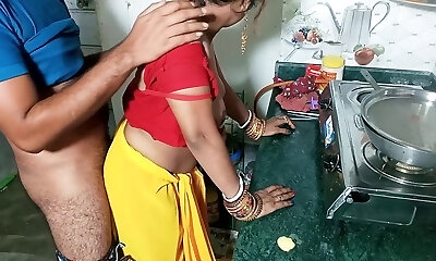 东主粗糙Boinking女仆女孩谁烹饪食物在厨房色情在印地文的声音