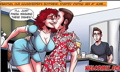 女佣被她的老板和她的儿子上了床,直到在阴部里射液